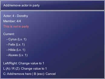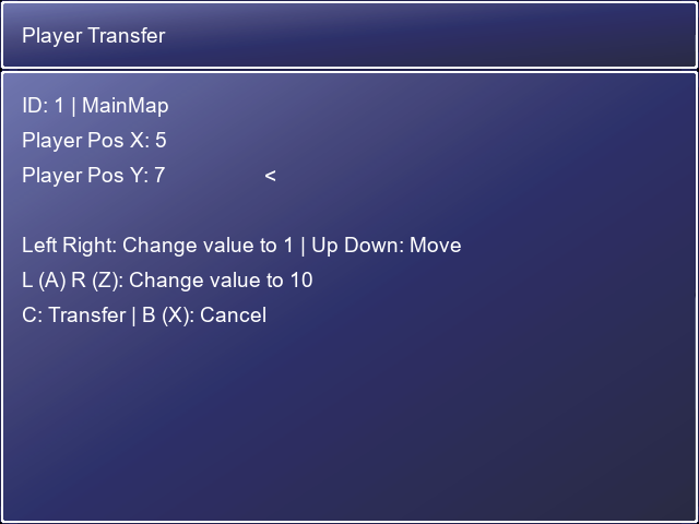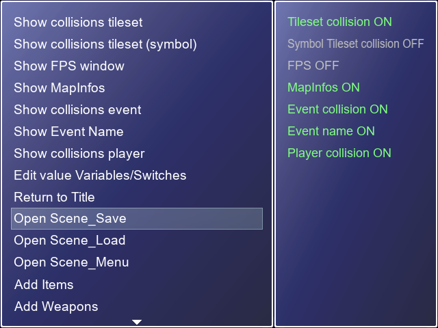 * Edit Variable/Switch Values = Allows you to modify the Variable and Switch values (it simply opens RPG Maker XP's Scene_Debug)