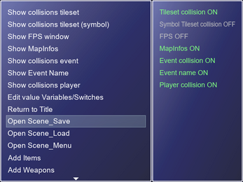 * Show Tileset Collisions Symbol = Displays the collisions of the current tileset (X = Impassable, O = Passable, P = Priority, B = Bush)